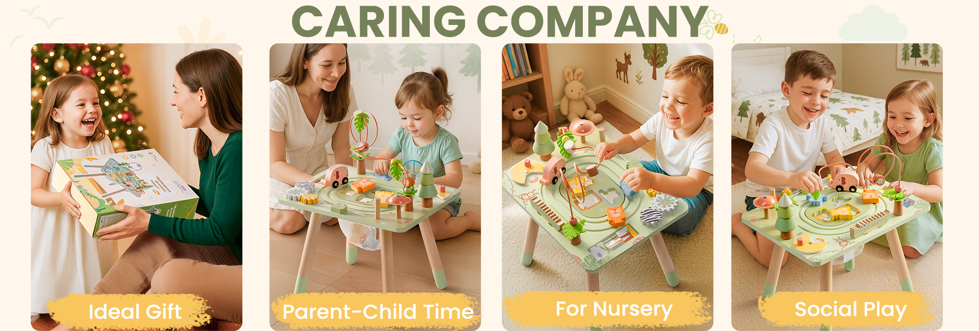 Supports Independent Play: This wooden activity table encourages independent exploration and play. By providing challenging activities at a child's own pace, it fosters independence, builds confidence, and promotes problem-solving and self-directed learning.