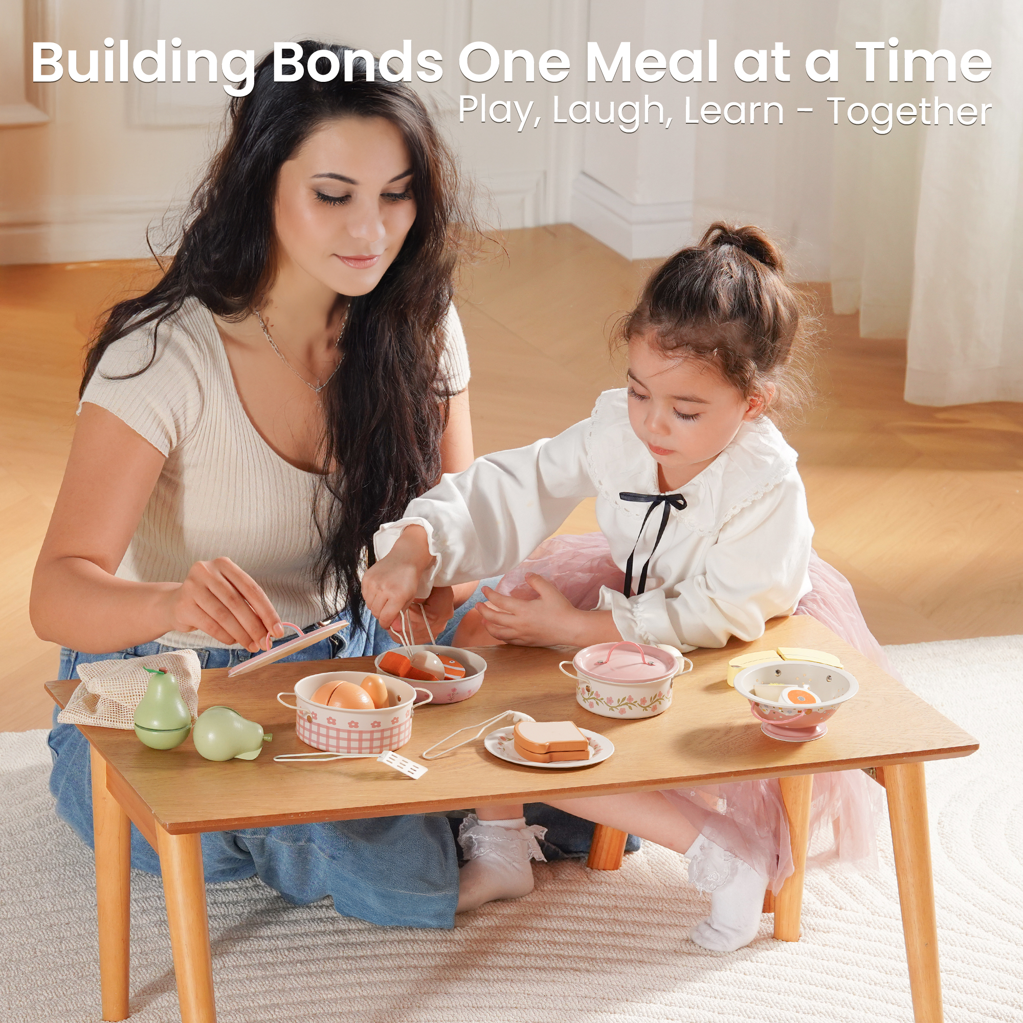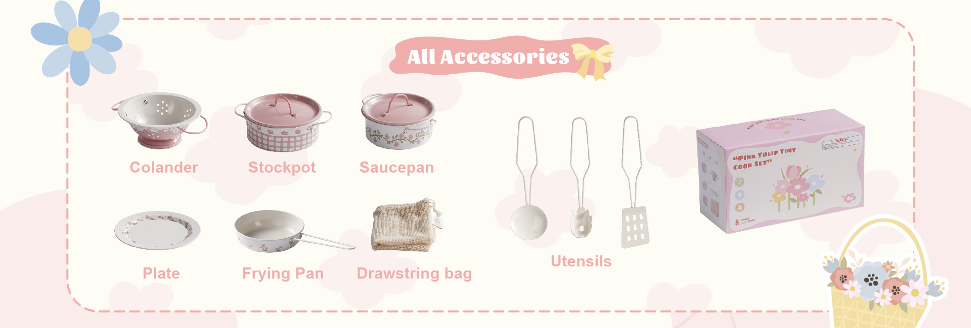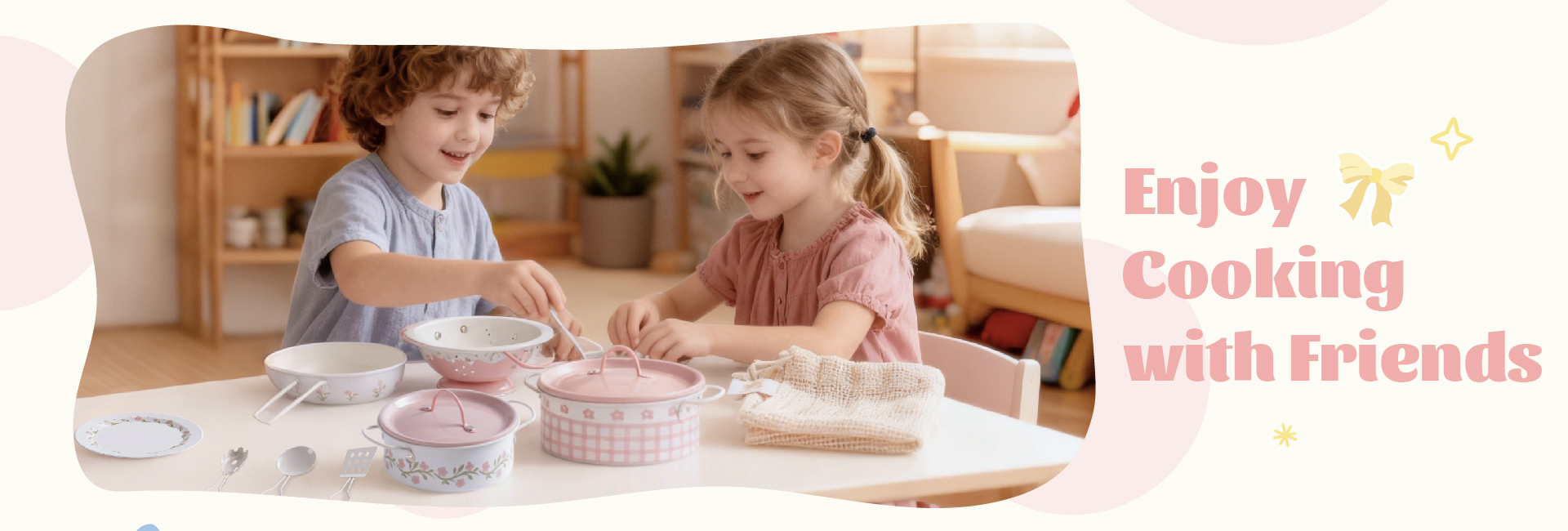 Durable & Safe Metal Design--Made from sturdy, smooth Metal with rounded edges, this play cookware set is built to last through years of play. It’s lightweight yet durable, ensuring safety and comfort for toddlers and kids during pretend play, whether in a play kitchen, mud kitchen, or backyard setup.