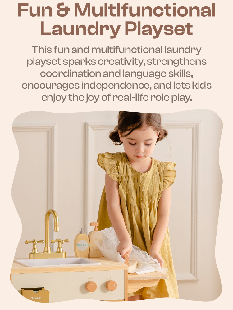 - 🔍EDUCATIONAL & INTERACTIVE TOY: More than just a toy, it functions as an interactive tool that helps children learn essential life skills. Through simulated laundry activities, kids can gain basic knowledge about washing, and playing with friends further enhances social interactions.